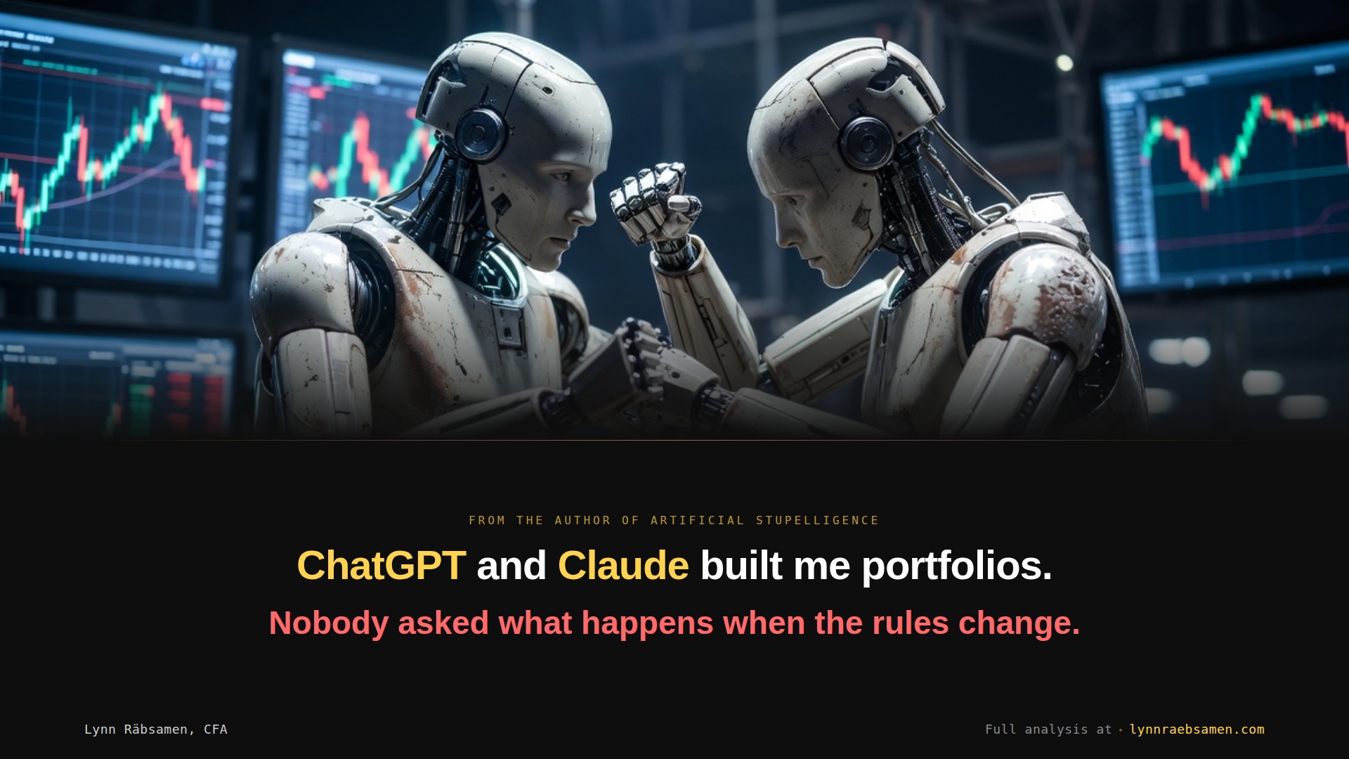 When I ran my own ChatGPT vs. Claude portfolio experiment earlier this year — giving both models identical mandates to construct AI infrastructure portfolios using a ‘picks and shovels’ strategy — neither model was asked to stress-test for regime change. Neither volunteered to.
